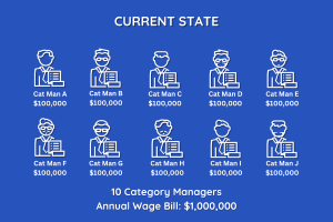 Well, perhaps counterintuitively, the first thing I’m going to do is reduce the number of category managers from 10 down to 5. Let’s assume that they maintain the same salary.